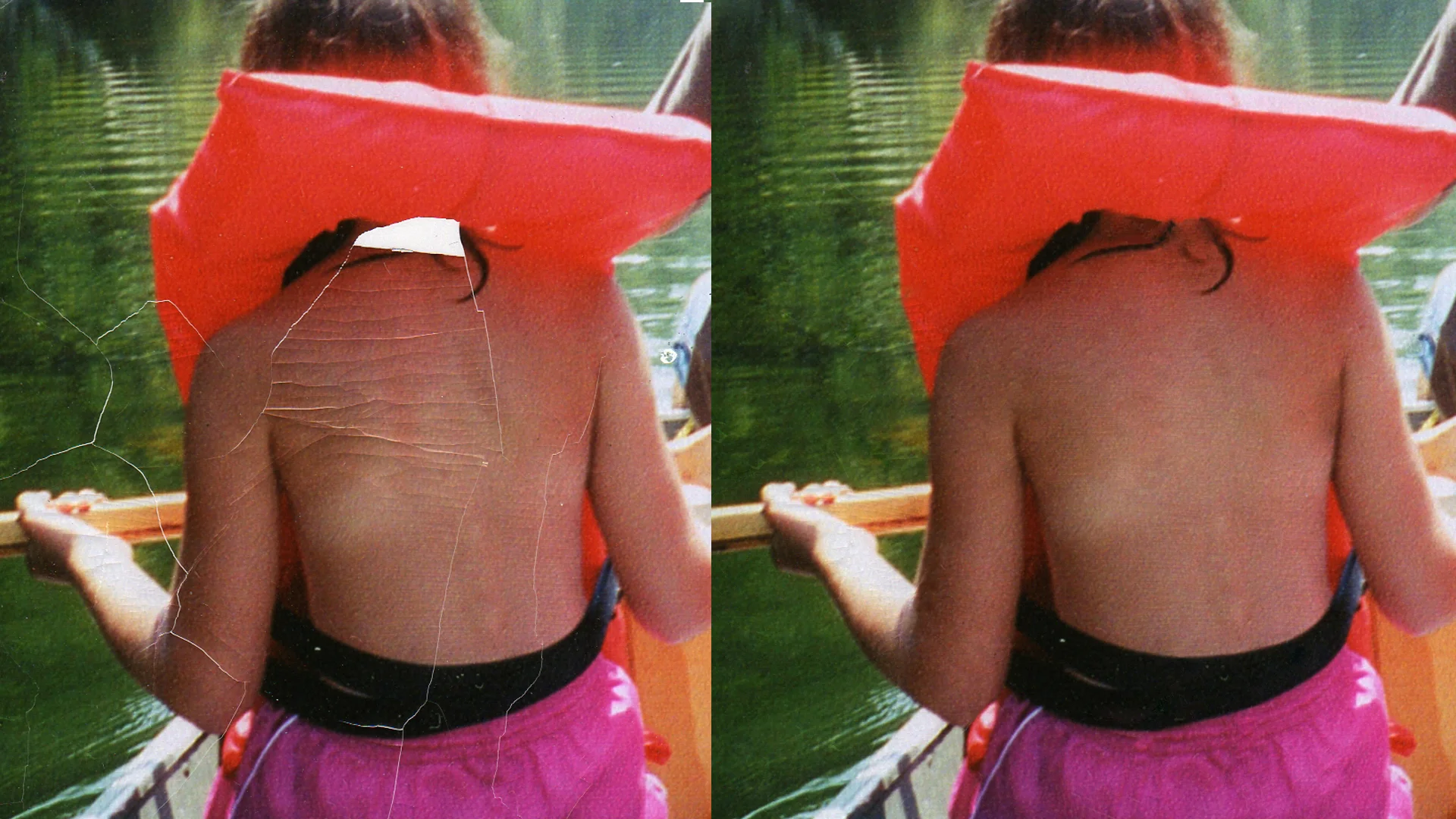 We can repair just about any blemish made on your photos. In this example the photo bad been kept in a frame in sunlight its whole life, when it was removed the ink stuck to the class and the image had formed cracks over time. Our specialist took this photo into our editing software and restored it to its original state. Bring your photos back to life and give us a call today.